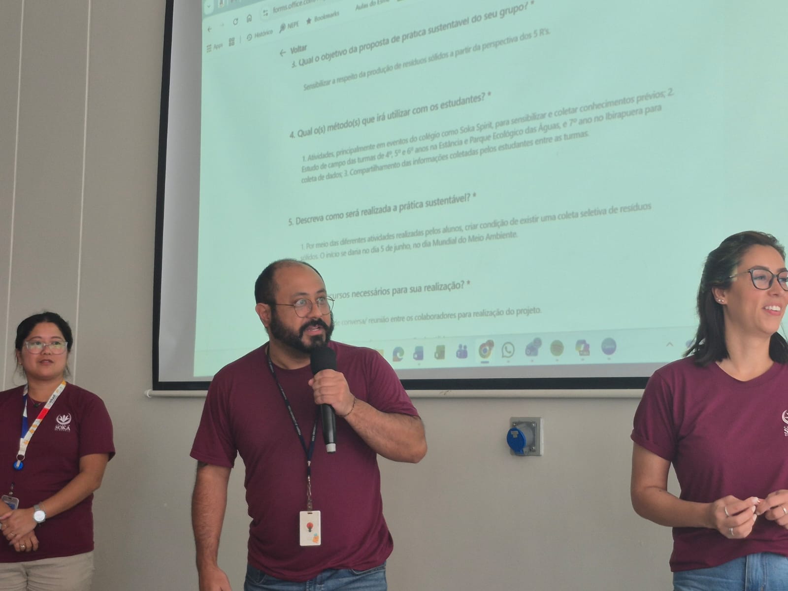 Essa educação que gera valor tem início quando os profissionais que atuam no Colégio Soka recebem treinamento, colocando em ação, o propósito da escola: Despertar o potencial de cada indivíduo para contribuir com a paz e o bem-estar da sociedade. Esse despertar teve início, antes do ano letivo, com o aprimoramento dos profissionais e hoje, 26 de janeiro, data conhecida como o Dia Mundial da Educação Ambiental, realizou nas dependências do Colégio Soka do Brasil a palestra “Formação: Currículo e a Metodologia de Sustentabilidade: Colégio Soka e Instituto Soka Amazônia”, ministrada pelo diretor ambiental do Instituto Soka Amazônia, João Carlos dos Santos.
