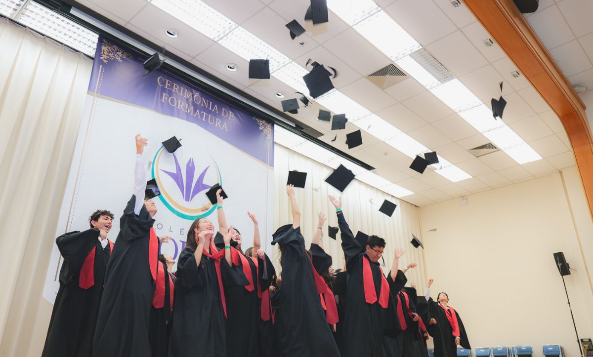 Nem a chuva torrencial que caiu à tarde sobre São Paulo foi capaz de apagar o brilho da formatura da sétima turma do Ensino Médio. Pelo contrário: a emoção e o espírito de companheirismo criaram uma atmosfera única, marcada por abraços, lágrimas e sorrisos.