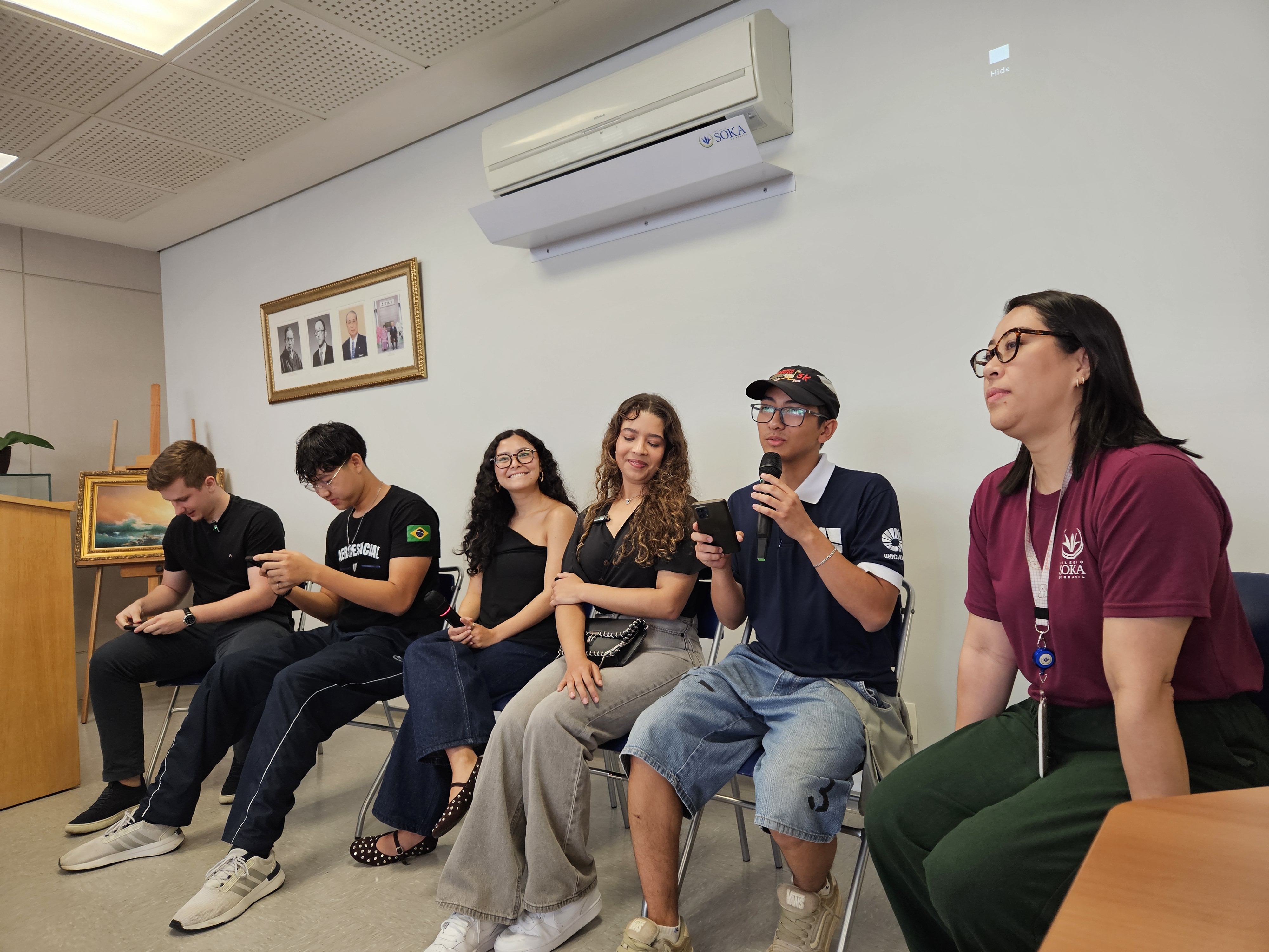 Rita Kojima, diretora de Relações Internacionais, deu as boas-vindas aos participantes e apresentou o programa Homestay, que, desde 2017, estudantes de diversas localidades do Brasil têm a oportunidade de realizar o ensino médio Soka em São Paulo. Lucas Nassif e Leonardo Morais, que fazem parte do Homestay, agraciaram a todos com uma apresentação da música Haha, de autoria do fundador do Colégio Soka, Dr. Daisaku Ikeda.